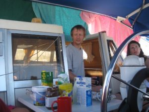 Z’morge ist schon fertig und die Gäste sind auch schon alle auf. War schon etwas eng! Aber für eine Nacht passen auch acht auf unsere Büx. Was braucht’s noch? en guete …