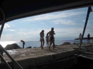 Die beiden überzeugen mich und ich stürze mich in die Badehosen. Fünf Minuten später ist unsere Büx wider frei. Leider konnte ich die Resten den Muring nicht mehr abfangen und fielen auf den Grund. Sch….. Mein erstes Mal.