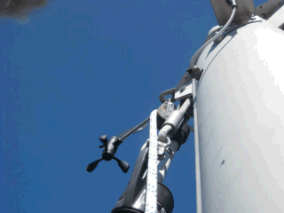 “Däddy, ganz einfach. Es hat sich nur das Spifall um das Vorstag gewickelt.” Gut, aber wie kann man das lösen. Kann ja nicht sein, dass man jedesmal auf den Masten muss. Es wird neu angehängt. So muss es gehen.