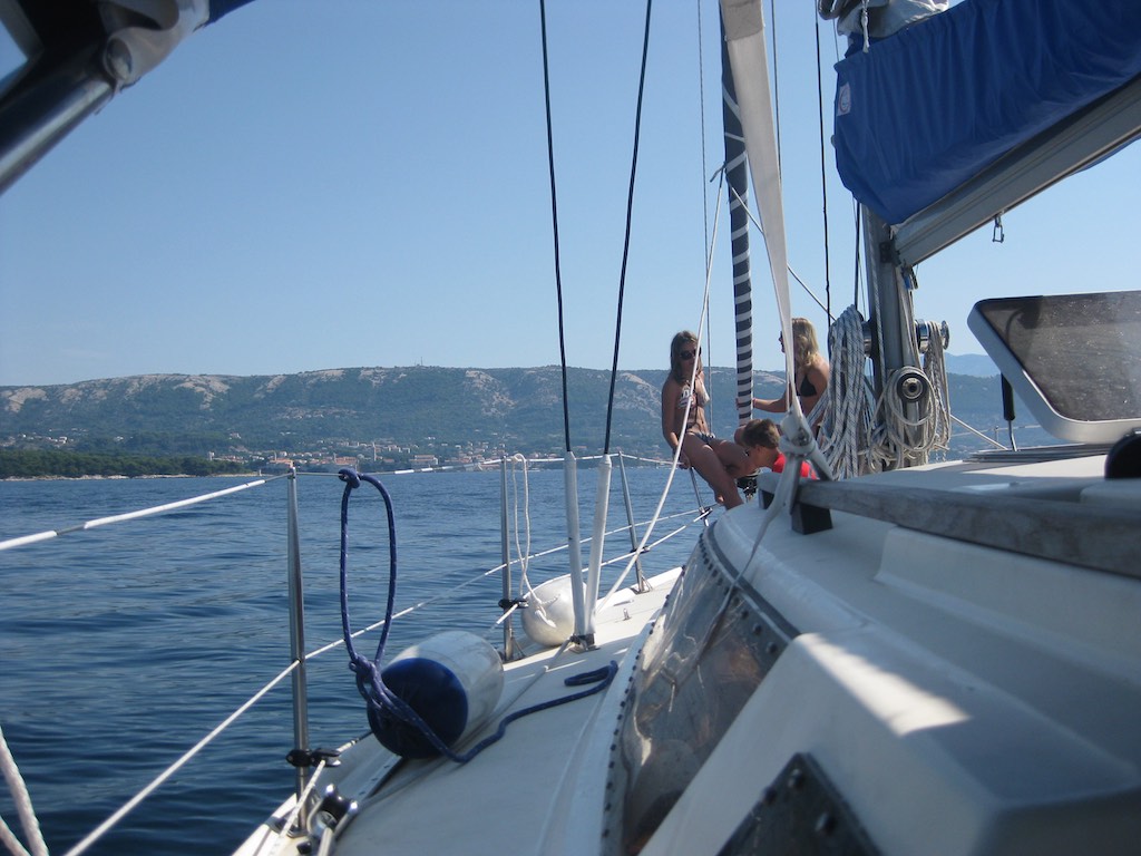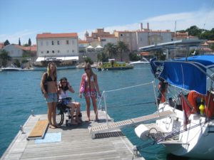 Rab! Das ist das Ziel Heute. Schon früh ziehe ich den Anker hoch und bei sehr wenig Wind motoren wir an einem schönen Leuchtturm vorbei. Die Kinder kommen Heute nur langsam in Schwung. Bis, ja genau bis die Delfine auftauchen. Mit einem Schlag sind alle hell wach. Riesige Begeisterung ab diesen wunderschönen, eleganten Tieren. Wir sind nur gerade ein paar Meilen von der Stadt entfernt und sehen diese Tiere.