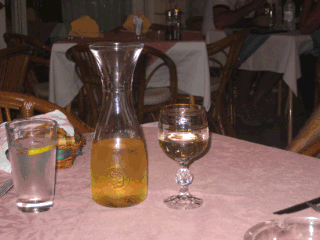 Ein Wirt kommt auf den Steg und verschenk Gutscheine für sein Restaurant. Adria heisst es und soll das beste auf der Insel sein. Tönt gut. Ich frage noch kurz die Nachbarn und die waren auch noch nicht da. So machen wir uns auf die Socken. Es ist gerade gegenüber der Altstadt und soll hübsch gelegen sein. Etwas steil soll es sein. Kein Problem. Ich schnaufe hoch und die Girls in den hohen Schuhen stögeln hinterher. Sieht gut aus. Super Terrasse und freundliche Leute. Wir schlagen zu. Fisch und Garnellen, Fleisch und Salat. Genial gut. Auch der Wein. Spitze! Dann kommt die Rechnung und die ist leider auch spitze. Es ist ja Ferien 😉