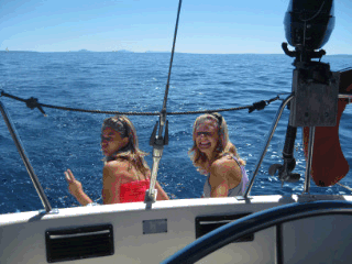 Um acht tuckern wir ab und setzen Kurs Nord. Durch den engen Kanal zwischen Ist und Molat direkt nach Ilovik. Wind! Hat es keinen oder doch? Ja es hat, aber genau auf die Nase. So motoren wir. Die Girl’s haben trotzdem Spass.