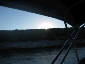 Gestern hatten wir noch ausgelost, wer denn heute die Landleinen losmacht. Sieben Uhr, es kommt gerade der erste Sonnenstrahl in die Bucht und ich wecke den “Gewinner” von gestern. Sever zieht bedächtig die Badehosen an und macht sich ohne zu murren auf den Weg. Oder besser auf’s Wasser.