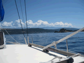 Aber es kommen uns tonnenweise Motorboote in Taschenformat vorbei. Die wenigsten nehmen Rücksicht auf die Segler und preschen meistens vor uns durch. Das Meer gehört ja allen, aber die sind fast eine Plage. Was soll’s. Die Kinder kümmert das wenig. Sie spielen wieder einmal Dog.
