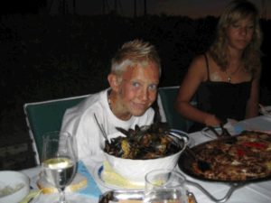 Joel bestellt einen keinen Topf Muscheln und wir eine feine Fleischplatte.