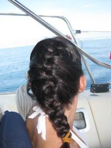 Wind? Leider nein. Wir motoren direkt zum Hafen auf der anderen Seite des Kvarners. Jasmin kreiert einen schönen Zopf bei Gaby und die anderen lesen oder hören Musik.