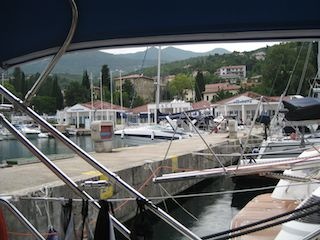 Endlich kommen die Mitarbeiter des “Besten”. Hallo. Deutsch? English? Samo hrvatski! (Nur kroatisch) Schön. Mit Händen und Füssen versuche ich ihnen klar zu machen was los ist. Sie schauen sich das Ding an und schütteln nur den Kopf. Einer nimmt das Telefon zur Hand und ruft den “Besten” an. Dann nach einer Weile darf ich ran. Er muss sich das selber anschauen. Er sei noch in Spital kommt aber in einer Stunde. Die beiden wirklich netten Herren verabschieden sich und so warten wir wieder.