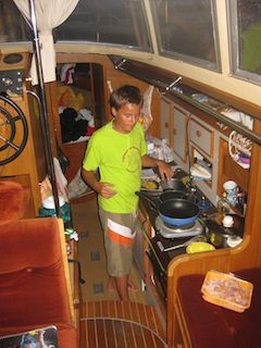 Die Büx ist wieder Tip Top sauber und aufgeräumt. Zeit fürs Nachtessen. Sever möchte wieder einmal sein Curry machen. Sehr gut. Hunger haben alle und so macht er sich an die Arbeit.