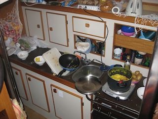 Zurück auf dem Boot “zertrenne” alle Motorverschalungen und schau was man den da noch machen kann. Eigentlich kann ich nur eines, warten!
