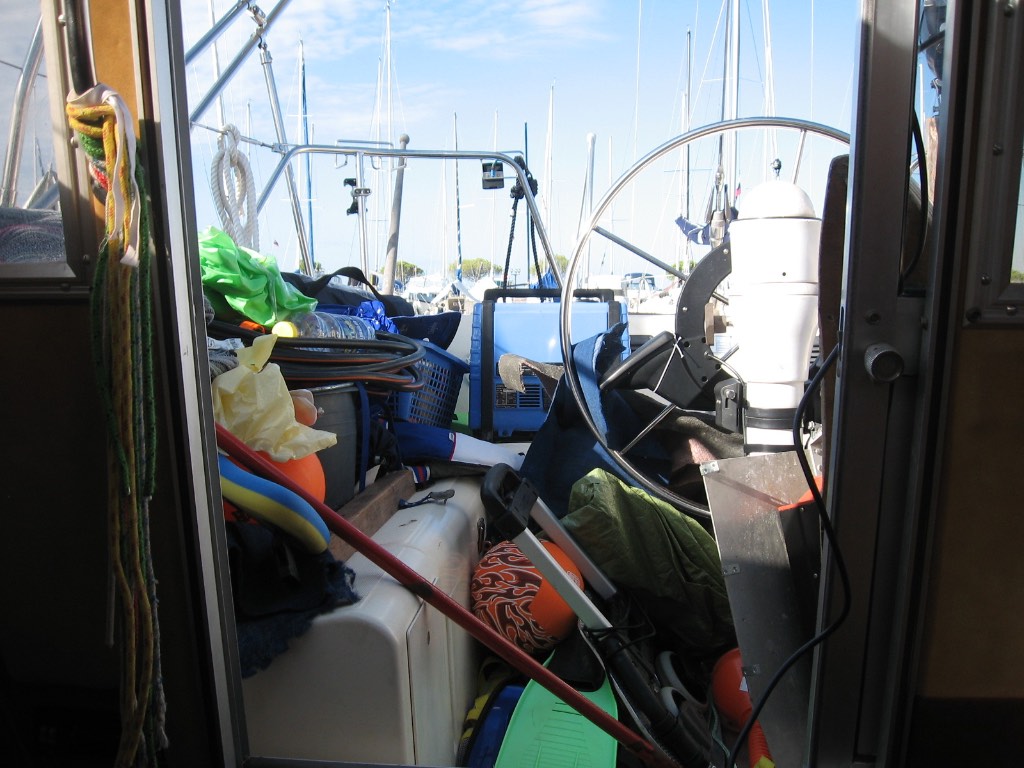 Mittwoch Morgen und es wird etwas kühler. 8,3c wird angezeigt. Und dieses riesen Puff! Zuerst müssen wir noch Farbe für die Bilge besorgen. Die Groundpaint ist zwar noch nicht ganz trocken, aber gegen Mittag kann Joel loslassen. Drei, vier Schichten sollten es schon sein. Damit die eckigen Sachen nicht das ganze aufreissen. Dann werden die ganzen Kabel noch sauber verlegt und befestigt. Einräumen können wir nur innen, wenn überhaupt möglich.