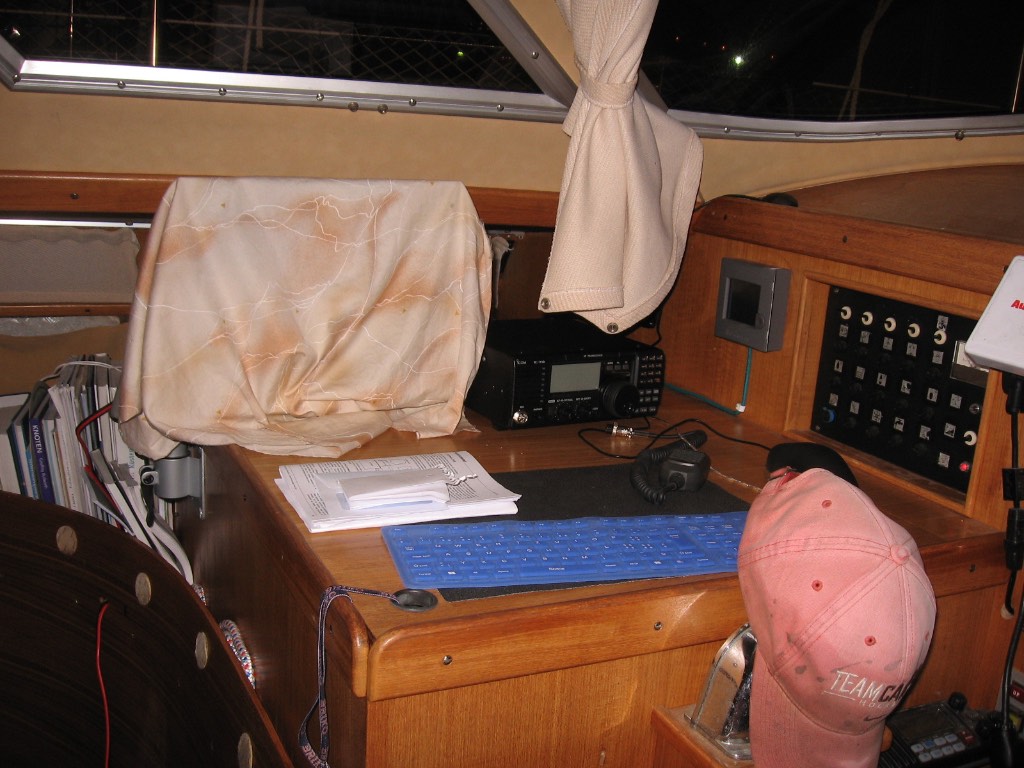 Punkt 2 Uhr läuft das Ding zum ersten Mal. Wow, das ging aber schnell. Läuft es aber auch? Lassen wir uns überraschen. Die Bluethooth Verbindung wird gesucht und angehängt. Das neuste Airmail Programm wird installiert und gestartet. Cool. Aber sobald wir funken, verzieht der Bildschirm sein Gesicht und der BoardPC verabschiedet sich. Leider haben wir das Antennenkabel durchs ganze Elektropanel gespannt und beim Senden ist die Leistung einfach zu hoch. Also das Koax nochmals raus und über die Sitzbank hintenrum zeihen. Viel besser. Sofort wird das erste eMail über den eingebauten Pacor versendet und es kommt auch an. Ich bin begeistert! Es erinnert mich ans erste 2400 Modem, mit dem ich mich ans Internet hängte. Passt.