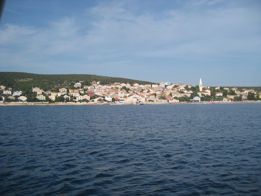 6.30 Uhr legen wir bei der Boje ab. Alles ist ruhig und kaum sind wir draussen, folgen uns schon die ersten vier Boote. Uebertags werden es immer mehr. Trotzdem sehen wir, und wecken sogar Jasmin, eine ganze Definschule. Es sind 10 – 15 Tiere und folgen uns kurz. Was fuer ein Schauspiel! Gestern hatten wir zu unserer Ueberaschung sogar in der Bucht zwei gesehen. Es war eine Mutter mit ihrem kleinen. Wir konnten es kaum glauben, dass Delfine so nah an die Boote kommen. Es sind ja über 60 Bojen in der Bucht. Die Marina Veli Rat noch nicht dazugezaehlt. Der Wind gibt nicht viel her und so motoren wir bis nach Unije. Zum Schluss dreht er noch nach sueden und wir koennen wieder eimal vor dem Dorf ankern. Jetzt haben wir nicht einmal Schwell und liegen ganz ruhig. Aber um Mitternacht soll der Wind auf Nord drehen. Am Abend gehen wir mit dem Dingi ins feine Restaurant Palmira. Wunderschoen gelegen, direkt am Strand und unter tonnen von Pflanzen. Wir bestellen drei lokale Fische und geniessen das feine Essen.
