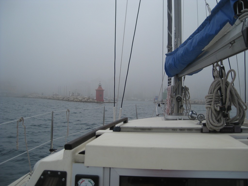 Ein kurzer Zmorge und weg sind wir. Langsam tuckern wir zum Haufen raus. Gutes Gefühl und doch irgendwie komisch. Wir haben so lange auf diesem Moment gewartet und jetzt ist er da. Einfach so versinken wir im Nebel. Ja genau. Zum Glück haben wir ja den Radar! Das Hotel Bernardin sehen wir nicht. Tasten uns mit dem GPS nach Piran vor. Keine Lichter! Hätte ich nicht gedacht. Aber es ist ja (fast) keiner draussen.