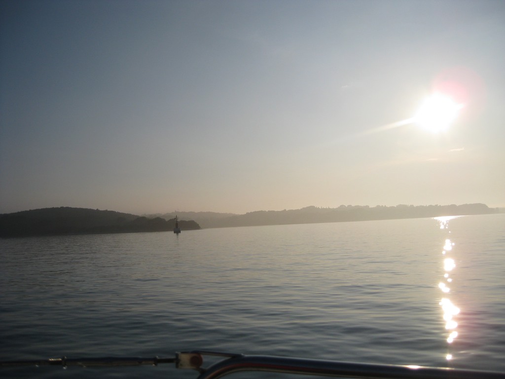 Jetzt kommt sogar noch etwas Wind auf und wir setzten die Genua. Mit 5-6 Knoten segeln wir in Richtung Pula. Dann kurz vor Rovinj kommt der Nebel wieder. Ein bis zwei Meilen dürfte die Sichtweite schon sein. Aber die Augen werden immer müder. Ich sehe immer wieder Masten oder Rümpfe wo gar nichts ist. Mehrmals sehnen wir uns den Radar mit seinen lässigen Kreisen, den umliegenden Schiffen oder Küsten herbei. Jetzt nur weiss. Wenn ein Hafen in der Nähe ist hupen wir mit unserem Horn. Es ist ohrenbetäubend laut. Aber gerade richtig für dieses Wetter. Natürlich kommen Zweifel auf. Ist das alles richtig was wir da so treiben. Was liest man nicht alles über Nebel? Dann kurz nach dem Leuchtturm SV. Ivan taucht das erste Schiff aus dem Nebel auf. Wir sehen es gut, wissen aber nicht was er treibt oder ob er uns sieht. Zur Sicherheit drehe ich ab und wir kreuzen uns ohne Probleme.