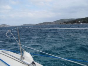 Als wir aufstehen hat der Wind schon angefangen. Er bläst eigentlich genau von der Seite auf uns, aber es bauen sich trotzdem Wellen auf. Die steuern natürlich genau auf uns zu. Prima. Fünfzig Meter daneben, ruhig und kein Schwell. Hier ist die totale Waschmaschine! Mit Gaby ist es unmöglich das Schiff zu verlassen. Das Heck tanzt unablässig auf und ab. Das würde ja noch gehen, aber auch der ganze Steg wird im Minutentakt nassgespült. Da gibt es nur eines, abwarten und Tee trinken.