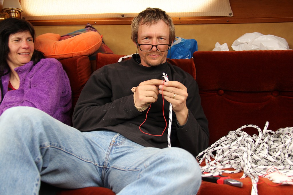 Jetzt geht es erst recht an die Arbeit. Ich hole meine SegelStrickSachen hervor. Wieder hat es mich gepackt und ich mache ein paar Taklinge. Die Fenderleinen sind einfach zum schiessen. Mit diesem roten Abschluss, sieht doch fätzig aus?