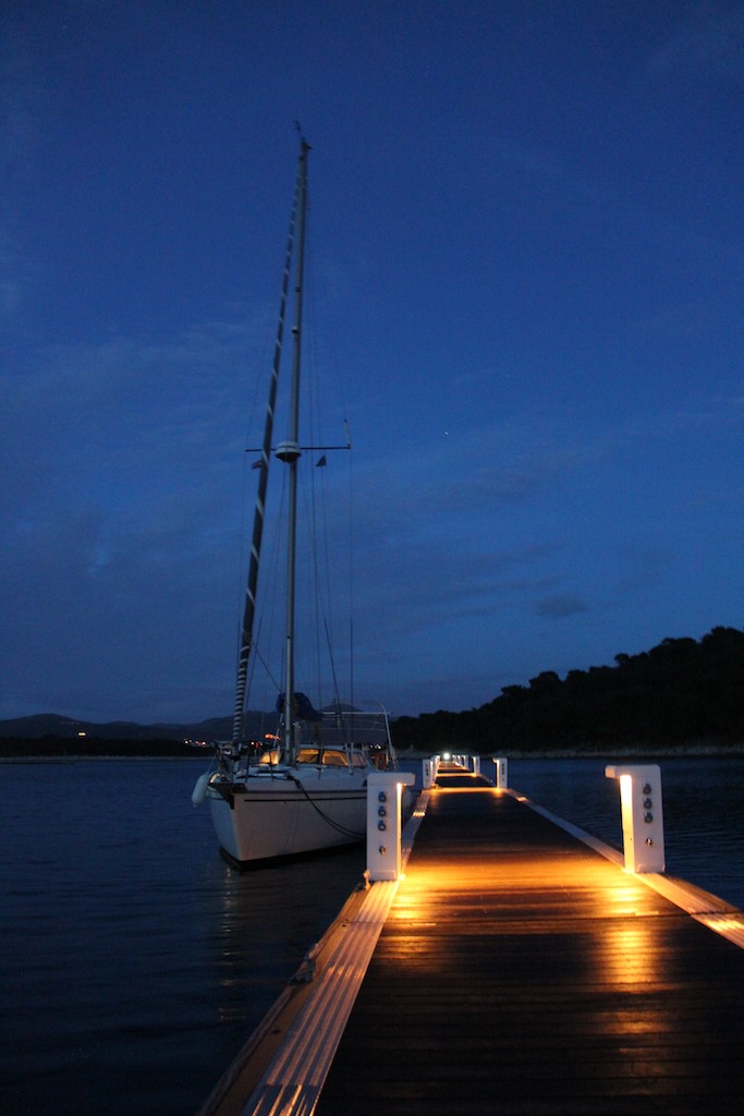 So jetzt ist aber schon spät. Um acht Uhr gehe ich noch kurz nachschauen, checken wie das Boot angemacht ist und dann ab ins Bett. Gute Nacht am leeren Steg …