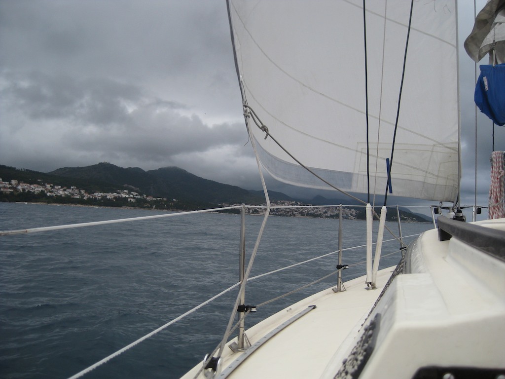Ab sechs Uhr geht der Tag ab. Temperatur checken immer als erstes. Rückmeldung an die Regierung: 11.7°. Also nicht soviel zum anziehen. Die Wetterdaten eintragen und um sieben legen wir gemütlich ab. Ziel ist Korcula. Neuland für uns. Bis jetzt kannten wir alle Häfen, Marinas oder Bojen. Mit etwas Wind segeln wir an Hvar vorbei. Ruhig wie nie. Was geht da alles ab im Sommer?
