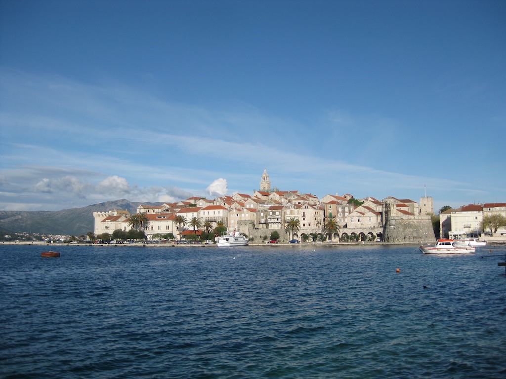 Anstatt Regen, wird der Tag immer besser. Der Wind steht und mit der Sonne wärm sich alles schnell auf, so wie es sein soll. Schon bald erreichen wir den Kanal nach Korcula. Strömung? Muss wohl sein. Ich checke die Log- mit den GPS-Daten und da haben wir fast eine Knote Gegenstrom. Die Aussicht ist gewaltig. Eingebettet zwischen Bergen und Wasser steht diese schöne Stadt. Wie ein Bergsee!