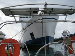 Wir warten und warten. Dann endlich nach ca. 3/4 Stunden bekommen wir das Okay. “SY Ulalena can dock betweet the ferry and Seabourn Spirit”. Haben wir Platz? Genügend. Ich komme mir Gross und trotzdem sehr klein vor. Ich legen an und darf aus dem Zollbereich zum Hafenbüro. Fünf Minuten später bin ich schon beim Zoll. Dort auch nur fünf Minuten und dann nur noch zur “Endkontrolle” zur Personenkontrolle. Auch hier, zuerst die Kleinen und dann er die Grossen. Nach einer Stunden vor mich her fluchen, habe sie ein einsehen und fertigen uns endlich ab. Die Nerven sind aufgebraucht. Wir legen ab …. endlich.