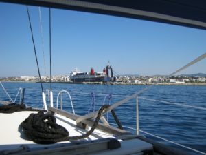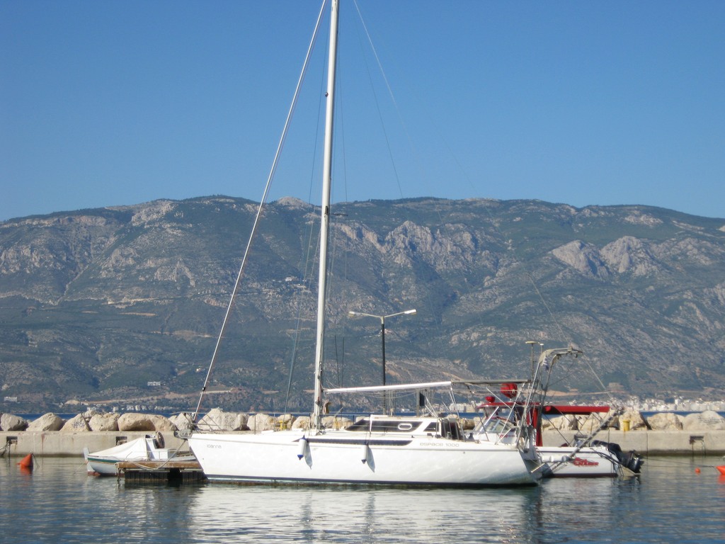 Da kommt schon der Hafen von Korinthos in Sichtweite. An dem Koloss können wir uns nun gut orientieren.