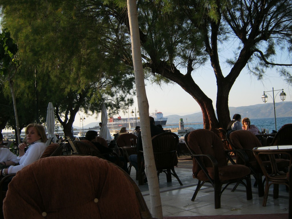 So geht’s ab in ein Café am Hafen. Herrlich. Es wird langsam dunkel und wir wollen was essen. Bis jetzt hatten wir nur Café’s gesehen. Essen kann man hier irgendwie nicht. Vom Café aus sehen wir einen Chinesen. Wir debattieren über, wie kann man den in Griechenland zu einem Chinesen gehen? Warum nicht und so rollen wir dort hin. Sweet & Sour ist für Gaby genau das Richtige. Ich geniesse Beef mit Pilzen. Etwas fade aber gut gekocht.