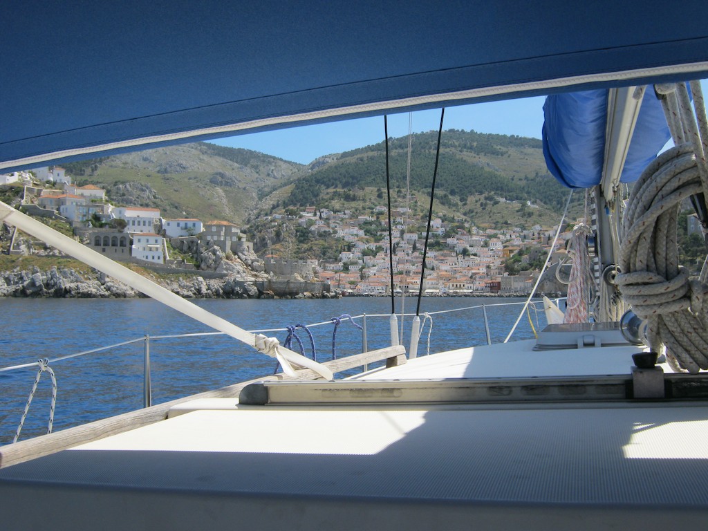 Fast dreissig Meilen sollten es Heute sein, wenn wir nach Hydra segeln wollen. Der Wind ist diesmal im Rücken und sollte uns eine gute Fahrt bescheren. Bis zum südlichen Punkt von Ägina ist alles bestens und wir kommen gut voran. Dann fällt der Wind etwas zusammen und der Motor muss helfen.