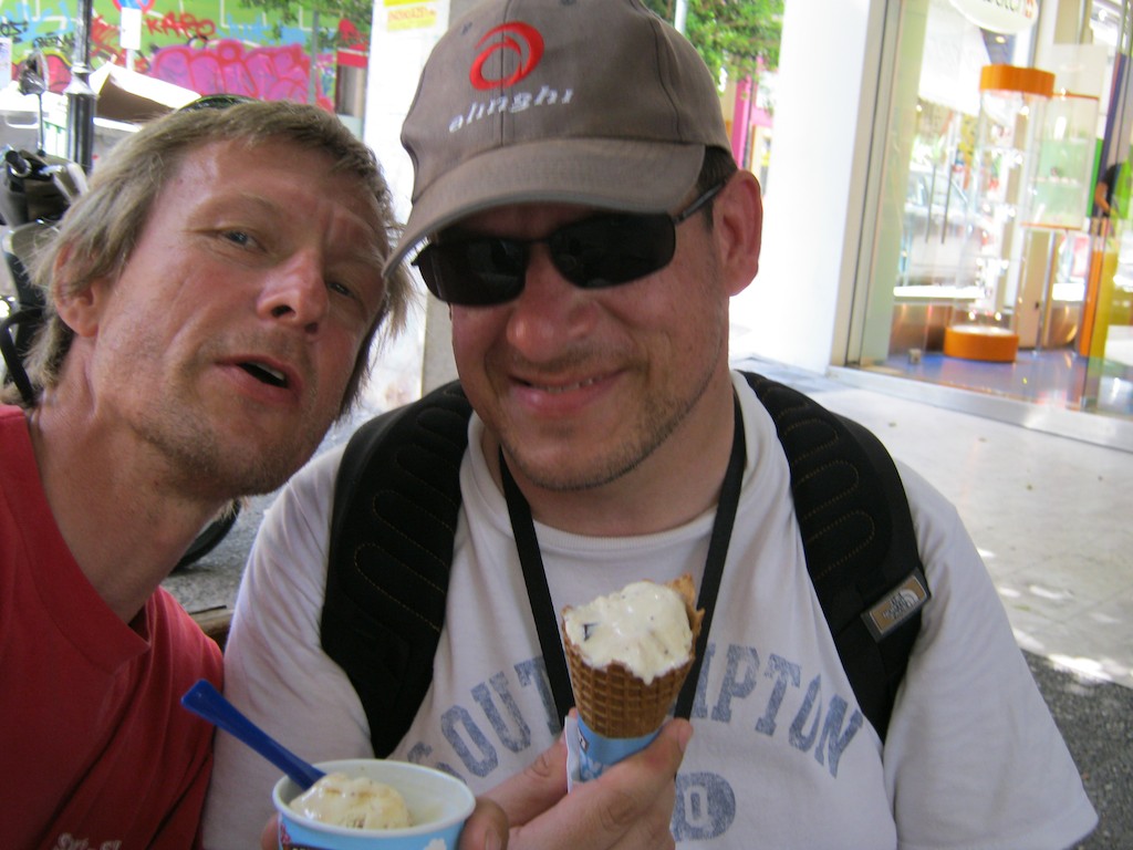 Dann brechen wir zum grossen Hafen auf. Dani kann nicht einfach am Ben&Jerry vorbeilaufen und so gibt’s ein Glace mit auf dem Weg. Sehr fein! Danke.