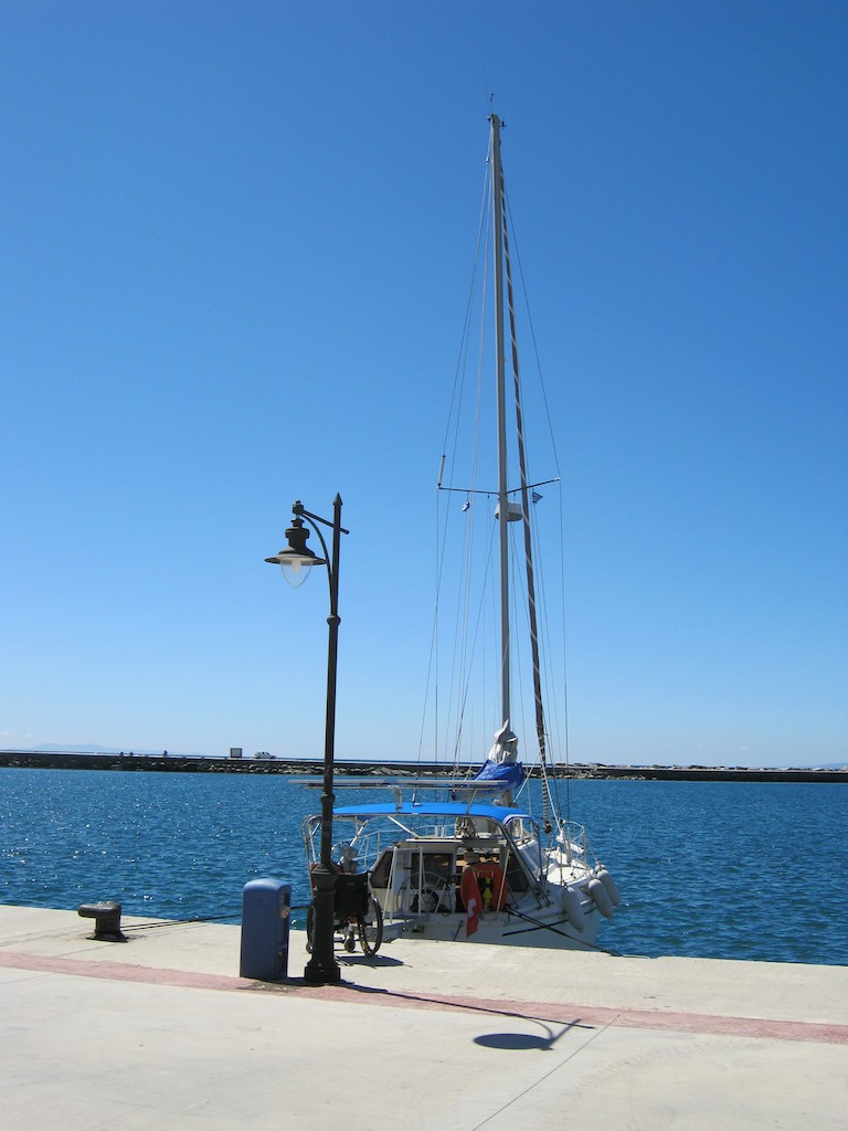 Alles passt und wird zusammen geschraubt. Aber auch mit dem Übergangskabel lässt sich kein Strom entlocken, doch das Ding können wir später immer wieder gut brauchen. Die Masse ist verlegt und der ultimative Test kommt morgen während der Überfahrt in die Kykladen. Ja genau. Wir werden, nach langem hin und her, nicht zu den Mamamia-Inseln aufbrechen, sondern gemütlich in den Kykladen Inseln herumsegeln. Wir hatten in letzter Zeit einfach zu wenig Zeit! Der “Stress” war einfach zu gross. Keine Zeit zum lesen, bloggen, Zeugs anschauen oder Frappé trinken. Was für ein hartes Leben!