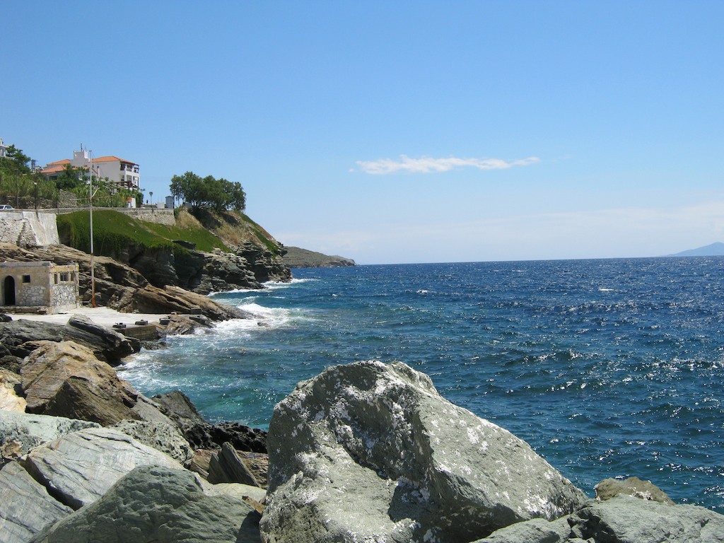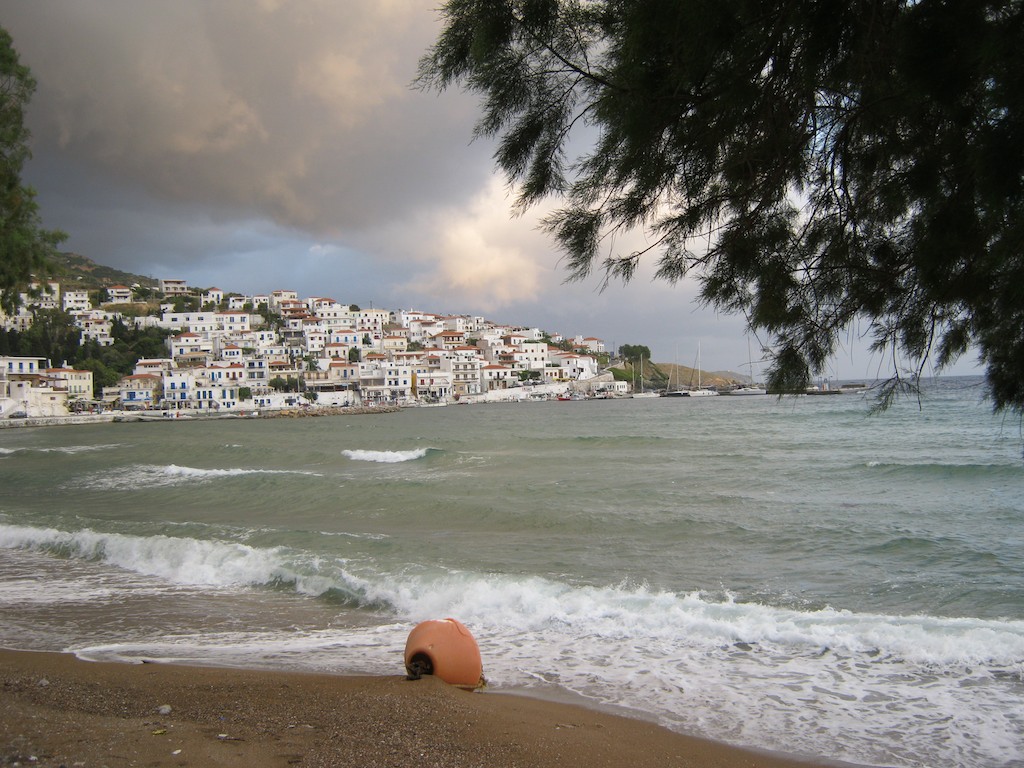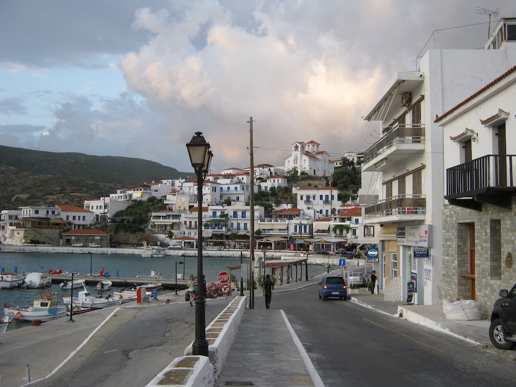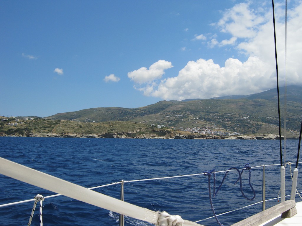 Jetzt beginnen offiziell die Kykladen. Andros ist die nördlichste und einsamste zugleich. Wir entscheiden uns für den Touristenort Batsi. Noch eine Untiefe und wir sind da.