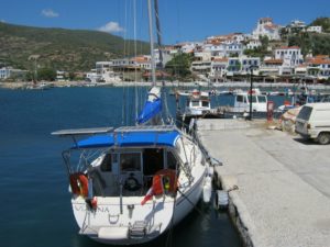 Kapitän Yannis kommt zu Hilfe. An der Aussenmole haben wir schon angelegt, als er uns den Rat zur Innenseite gibt. Es würde Wind kommen mit “schusch”. “Schusch”? Tönt gefährlich und so verlegen wir uns weiter an die alte Fähranlegestelle. Drei Fischer kommen zu “Hilfe” und beraten, was wo festgemacht werden sollte. Ja jetzt noch die Vorspring und das währe auch noch gut. Wir sitzen wie in Mamas-Schoss. Der Wetterbericht sagt zwar was von abflauen. Aber sicher ist sicher.