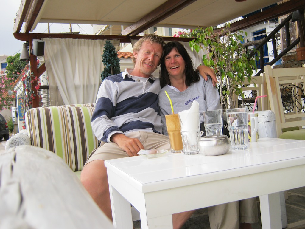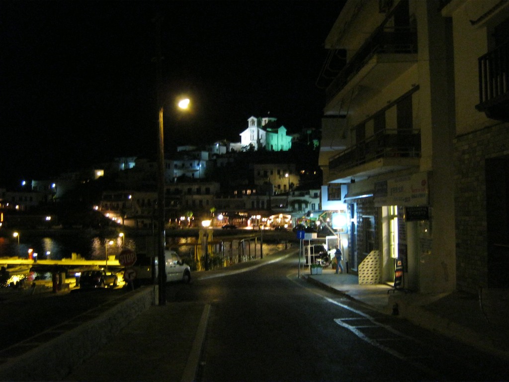 Ich ziehe mich noch kurz um, lange Schläuche und ein paar Pullis werden montiert und dann zu Kapitän Yannis’s Empfehlung. Die Taverne Stamatis. Durch eine kleine Gasse finden wir den Eingang. Sehr freundlich werden wir empfangen. Mal schauen was die zu bieten haben. Die Taverne ist fast so alt wie wir. Was sie uns dann auftischen, ist jammi, nur jammi. Gebratene Zucchini mit Salat als Vorspeise und ein eingepacktes Lamm mit Rüebli und Härdöpfel. Gaby mit einem Zucchini-Härdöpfel-Ragou. Weltklasse. Und der Wein dazu ….. Heute gehen wir nochmals hin.