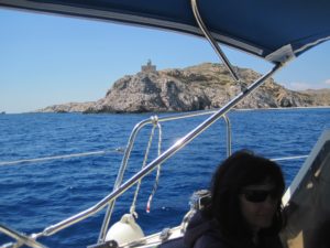 Mitten in der Nacht, es ist etwa halb Sechs, hören wir Kettengeräusch. Der will aber früh los. Ich nicke wieder ein. Dann Stimmen und die eindeutige Sprache der Italiener! Es sind ganz liebe Leute, aber mit dem Anker haben ein paar mühe. Dieser Über-, Übernachbar will scheinbar raus, aber er hängt der Länge nach vor vier Booten. Beim Anker aufholen wurde er abgetrieben und hat eine Kette erwischt. Hängt also in den Seilen. Es dauert eine halbe Stunde bis der Anker frei ist und dann nochmals eine viertel bis er weg ist. Er hat keinen Schimmer wie er raus kommt und fragt mich um Rat. Bug voran und dann den “Arsch” gegen den Wind, damit du von allen Ketten weg kommst. Gesagt getan und wir alle konnten wir der schlafen gehen. Die nächsten liefen erst um halb acht aus. Geplant war bei uns acht und das hatten wir auch eingehalten. Schlecht geschlafen und mit Unterbrüchen, kein Kaffee und dann auch noch Wind beim ablegen. Schlaftrunken erledigen wir unser Manöver aber ohne Kino und legen ab. Adieu du Geheimtip!