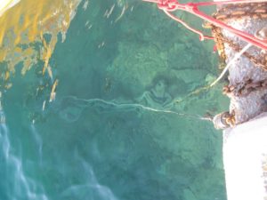 Bald ist der Hafen voll und wir schauen uns noch die Mooringkette an, die quer durch den ganzen Hafen gezogen wurde. Eine Sorgleine für den Anker muss wohl sein.