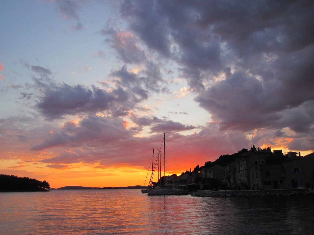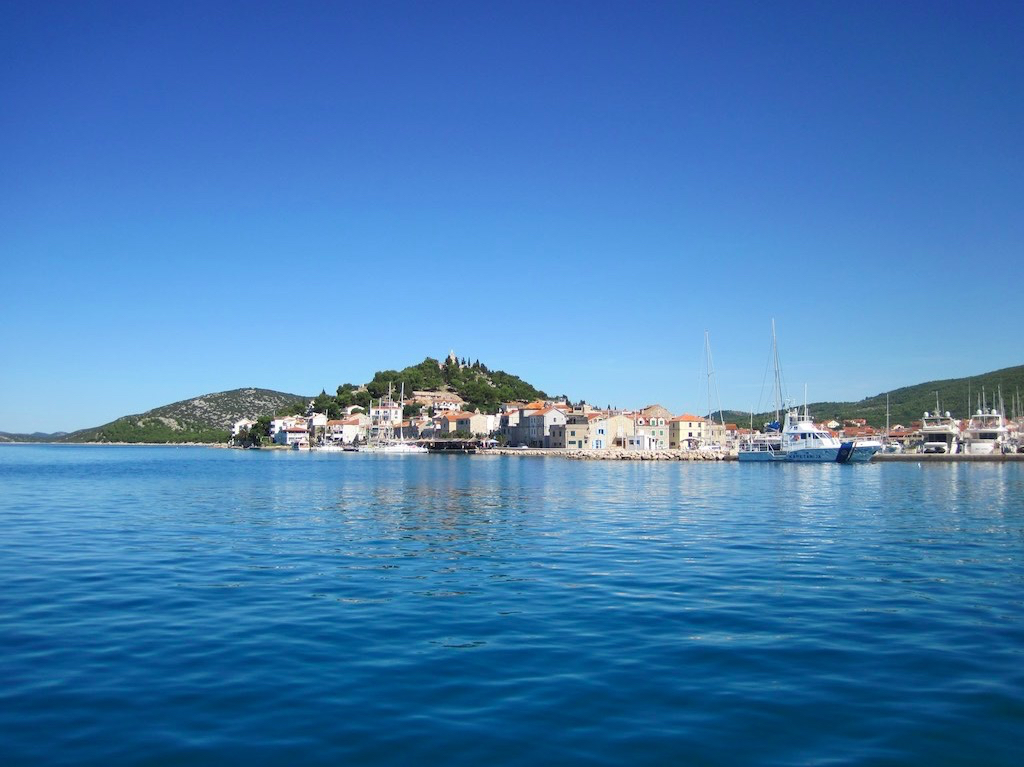 Nach 23 Meilen sind wir am heutigen Ziel, Tribunj. War herrlich, mal wieder den Motor ganz abzuschalten und ohne Strom, Windpilot, zu steuern.