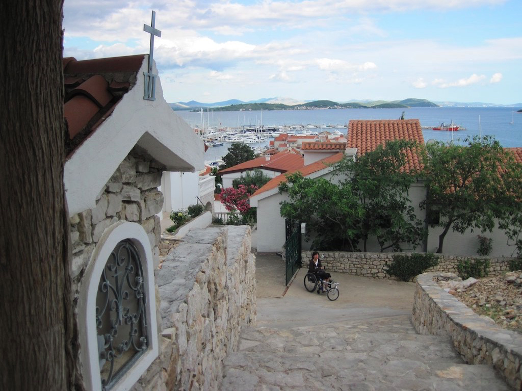 Wir blieben noch ein Tag mehr. Von der Kirche aus haben ich gesehen, dass Vodice gleich um die Ecke ist. Auch die Reception von der Marina bestätigt die geschätzten dreissig Minuten zur Touristadt. Der Weg ist zwar nur für Velos gedacht, aber das kennen wir ja schon 😉