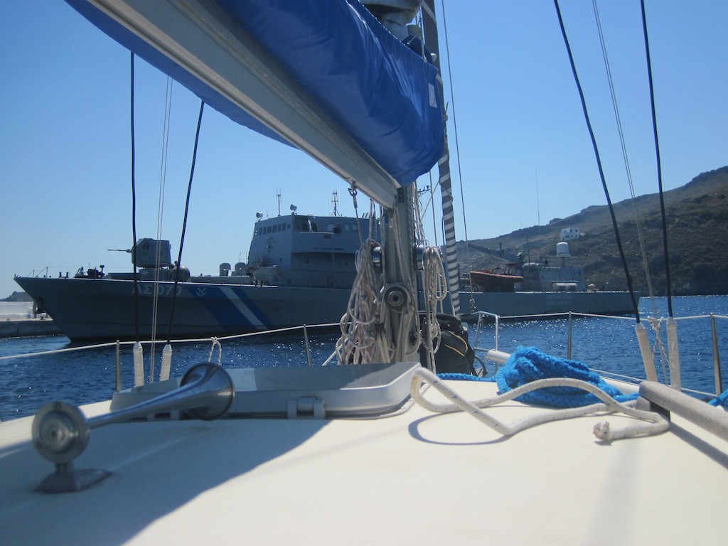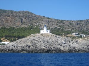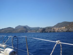7:20 Uhr tage ich ins Logbuch ein. Sieben von Nord und bereits 27.1°. Der Baro kommt wieder etwas hoch. Gut. Legen wir ab. Ich stosse die Ulalena vom Steg weg und ab geht’s zum südlichsten Punkt unserer Reise. Die Insel Kythira oder genauer gesagt, Kapsali ist unser heutiges Ziel. Vor zehn Jahren waren wir mit Aris da unten und es hat uns mächtig gefallen. Vor allem die Aussicht vom Kastel. Zuerst liegen aber fast 40 Meilen vor uns. Der Wind sollte stimmen.