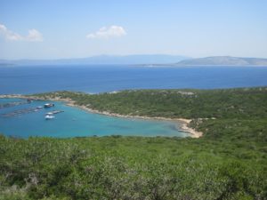Auf dem Ententeich geht’s ums letzte Kap der Peloponnesen, Kap Maratho. Neben zwei kleinen Inseln vorbei steuern wir unser Ziel die Insel Sapientza an. Im Süden hat es eine schöne Bucht und der berühmte Leuchtturm von Longos. Es soll einen Weg von der Bucht aus zum Turm geben.