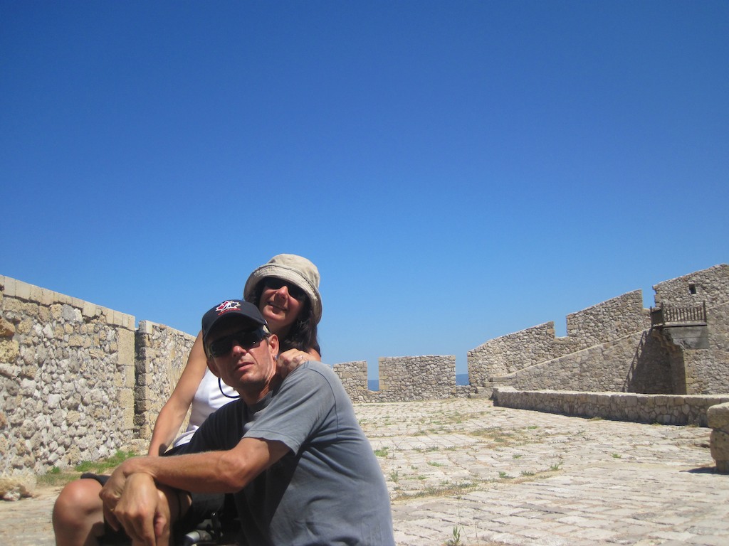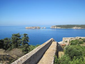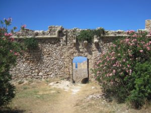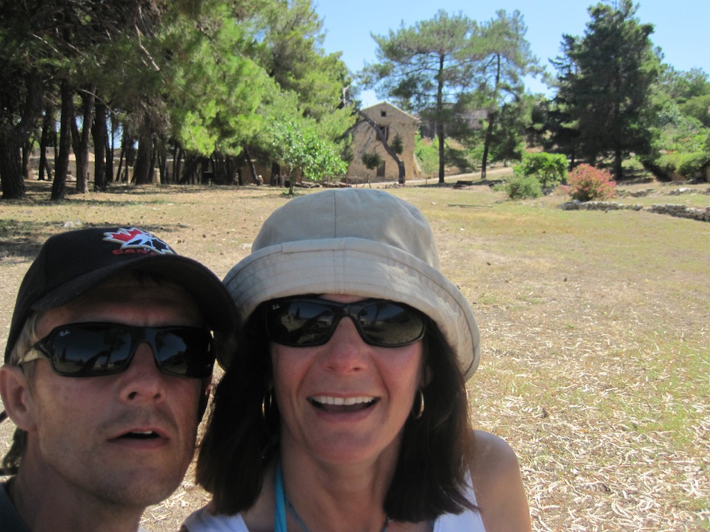 Jetzt ist aber fertig. Den Berg hinauf zum Ausgang. Bedanken uns nochmals für den Eintritt und die wunderschön, gepflegte Anlage und brauchen erst einmal etwas zu Trinken. Kommen aber nicht weit. Eine Segelladen-Besitzer fängt uns ab, man kann da als Segler nicht einfach vorbei laufen, man könnte ja was brauchen. Kaum sind wir im Laden, bekommen wir einen Becher Wasser. Wir sehen ein paar Dinge die wir schon lange gesucht haben und da bekommen wir noch eine ganze Flasche Olivenöl geschenkt. Einfach so. Tausend Dank. Es soll das beste sein. Danke. Danke.