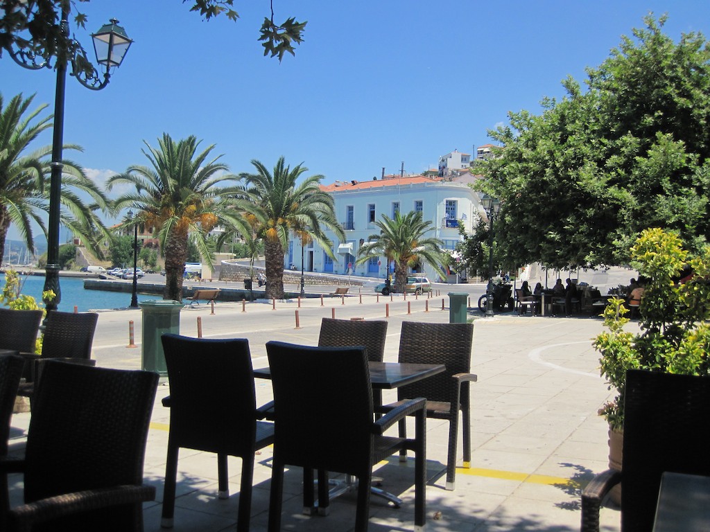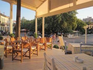 Gegen Abend gehen wir noch ein paar Sachen posten. Alles auf der Büx verstauen und ab zum Nachtessen. Grigoris, was denn sonst …