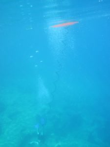 Ich fühle mich etwas bedrängt, als wir in die Bucht einfahren und versuche zu ankern. Hinter uns wollen gerade zwei andere einen guten Platz ergattern. Natürlich kommen wir uns in die Quere, denn keiner kann oder will warten. Unser Anker hält beim ersten Mal nicht und so wird es immer enger. Endlich liegen wir neben einem Norweger fest und genehmigen uns einen Zvieri. Joel kann fast nicht warten und baut schon den Freediver zusammen. Es hat sehr viele Fische und auch das Wasser ist mega klar.