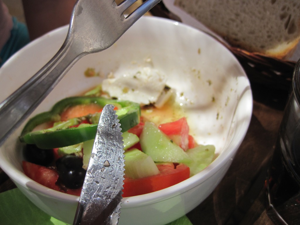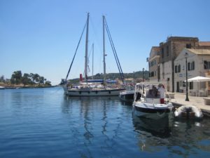 Leider stirbt der Wind genau nach dem Kap von Kerkyra und so motoren wir weiter. Die Temperatur steigt auf über 110° und plötzlich fängt er an zu motten. Das ist zu viel. Abstellen. Wir suchen nach einem Hafen und werden in Kavos fündig. Nicht der Hit, aber für eine Nacht ist es nicht schlecht. Es ist schon fast neun Uhr und wird bald dunkel. Idealer Platz. Denke ich. Mit etwas, 10 Minuten, Motor, Wind und dem Dingi schaffen wir es in den Fährhafen. Aber wo anlegen? Alles ist voll. Ich entschliesse mich für einen Ausflugsdampfer und so gehen wir längsseits. Alles fest. Kurz etwas essen. Jasi zaubert einen Nudeln-Mais Znacht und so hauen wir uns sehr, sehr müde in die Kojen.