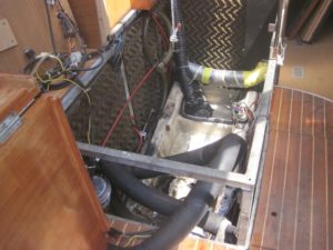 Dann hängen sie das Ding an und raus geht’s. Mit einem Fall und einem Flaschenzug fliegt der Motor aus der Ulalena.