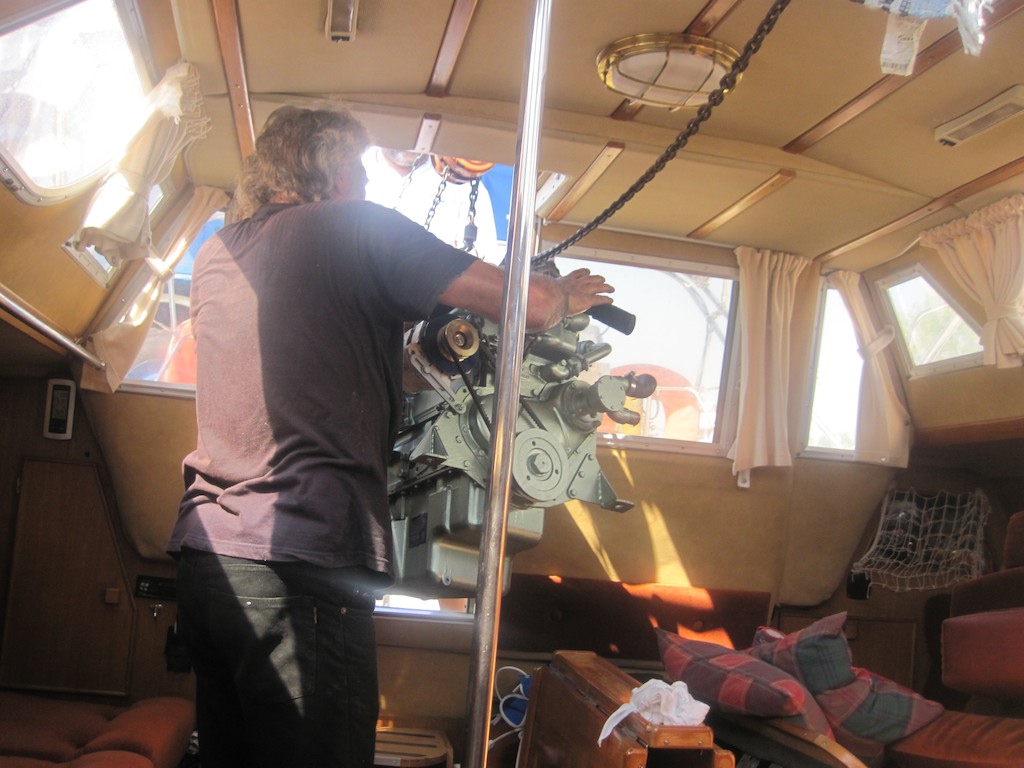 Der “neue” Motor trifft auch schon ein. Aber wo sind jetzt die Kranfahrer. Es dauert eine halbe Stunde bis alle da sind.