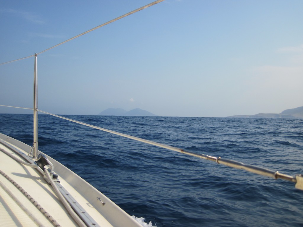 Endlich etwas Wind am Sonntag Morgen. Drei Stunden rasen wir Cavtat entgegen. Über 7.4 Knoten haben wir auf der Logge. Passt. Wir sind voll im Soll. Das sollte etwa vier Uhr werden, bis wir ankommen. Dann aber ein Schreck. Irgend was pfeift. Ich suche. Ist es der Board-PC oder kommt es vom Motor? Die Temperatur war ja in den letzten 40 Stunden sehr stabil und hatte keine Ausschläge. Es kommt vom Schlüssel und den Anzeigen. Das ist das Öldruck Ding. Sofort schalte ich den Motor ab. Zeihe den Ölstab raus ….. null! Gibt es so was? Stimmt, den hatte ich ja gar nie gecheckt. War das von Anfang an leer? Wir füllen auf und lassen ihn wieder an. Wir sind nur noch zwanzig Meilen vor dem Ziel. Das muss doch reichen. Ich fange wieder an zu zweifeln. War das wirklich eine so gute Idee, gleich abzurauschen, ohne drüber zu schlafen und dann erst los. Gaby und Joel beruhigen mich. Das muss so sein.