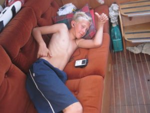 Wir haben es geschafft! Joel sagt nur, da komme ich nicht mehr mit, wenn es so lange geht. Ich bin glaube ich kein Segler 😉 (Er hat gelitten)