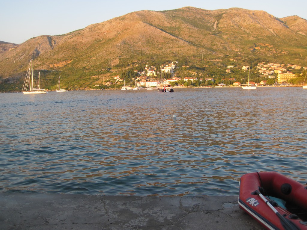 Die letzen drei Meilen motoren wir gegen recht grosse Wellen und erreichen den Zoll-Quai von Cavtat. Der Schwell ist extrem für unsere Ulalena. Auch längsseits ist zu grob und so legen wir zum dritten Mal mit Anker an. Total übermüdet suche ich den Hafenmeister und die Custom. Brauche eine Stunde bis alles erledigt ist. Weg geht’s von diesem “Ungetüm”. Hinter der Stadt hat’s eine schöne Bucht. Da gehen wir hin. Essen wir auf dem Boot? Nein, nein, sagt Joel. Ich muss auf’s Land.