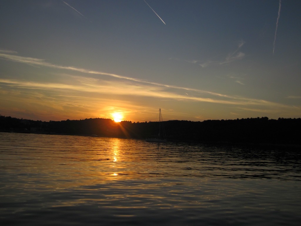 Wir fahren noch etwas in den Norden. Da soll es eine schöne Bucht geben im Peljeski-Kanal. Der Wind und das Wetter sollten dafür gut sein. Dann sind wir endlich da. Nach zehn Stunden motoren und über 50 Meilen, lassen wir den Anker fallen. Joel schaut noch kurz nach, wie der Anker sitzt. Etwas auf der Seite, muss aber halten.