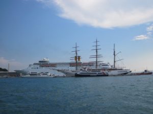 Dann chartern wir einen Taxi für die Stadt Split. Vor ziemlich genau fünf Jahren hatten wir hier einmal einen coolen Crewwechel, bei den fast alles schief ging. Mit dem Dingimotor ein Schiff beschädigt, den Bahnhof stundenlang gesucht, die neuen Gäste bei einem Gewitter an Board genommen, Stunden beim Tanken verbracht und zu wenig Geld mitgenommen. Tja, man lernt immer wieder. Diesmal liegen wir in der Marina und fahren bequem mit dem Taxi zur Downtown.
