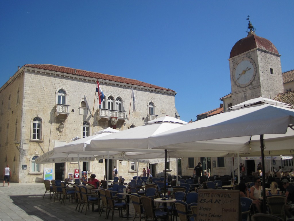 Ja, Trogir ist wirklich eine Reise wert. Die herzige Stadt ist zwar nicht so gross, hat aber sehr viel Scharm. Etwas lädelen, aber vor allem Essen ist angesagt. Es gibt viele, viele cool Beizen. Viele mit einem wunderbaren Innenhof. Da werden wir sicher eine finden. Jetzt schauen wir uns aber zuerst die Kirchen und Häuser rund um den Hauptplatz an. Schön.